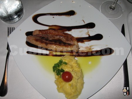 Y un Magret de pato con puré de manzana (menos a manzana sabía a cualquier cosa), presentado en una enorme vajilla de unos 30 cm de lado.