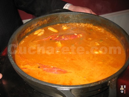 Bajel pirata que llaman a aquel buque que podría guardar, como secreto en su interior, a la mismísima Guardia Real o a incluso múltiples soldados dedicados a la persecución del contrabando. Sí, efectivamente me refiero al protagonista que da nombre al Arroz con carabinero y rape. Una enorme cazuela de metal cuyo gusto viene potenciado por sus dos ingredientes principales. En su punto de expresión adecuado. Debe tenerse en cuenta que se elabora para un mínimo de 2 personas. Nosotros vamos a compartirlo y debo reconocer que realmente nos encanta.