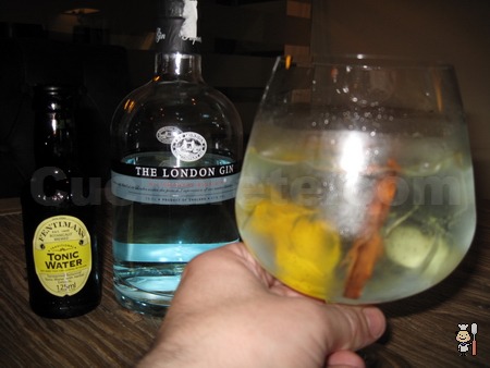 Dejé al resto del equipo decidiendo si pedir copa o no. Al final, sólo Rayo se animó, el resto teníamos coche. Como últimamente el gin-tonic parece que es cita obligada en Cucharete, fue precisamente esto lo que se pidió, en esta ocasión fue The London Gin con Fentimans preparada con un poquito de pimienta y canela en rama y servida en una copa de balón. Por cierto, el precio de la copa fue de 11 €, y son a 12,50 € si te decantas por otras marcas superiores como G’ Vine o Martin Miller’s.