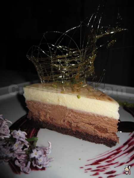 Ninillas me comentó que estaba delicioso, tremendamente suave. Se servía junto a un cremoso helado de vainilla, un coulis de frutos rojos y espolvoreado por encima de pistacho.